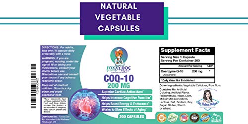 CoQ10-200 mg - 200 tapas - Absorción pura y alta - 6,5 meses de suministro de energía cardíaca...