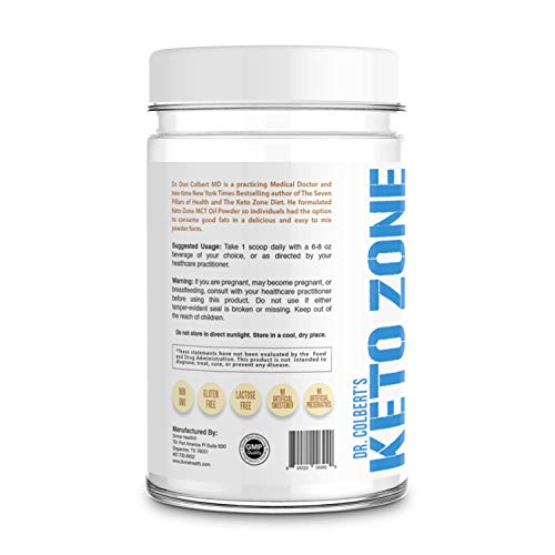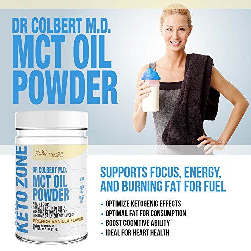 . . Descripción del producto New York Times es el autor y médico más vendido, Dr. Don Colbert creó el polvo de aceite Keto Zone MCT (Triglicéridos de cadena mediana), que es un delicioso polvo de coco natural. MCT son las grasas saludables recomendadas por el Dr. Colbert para apoyar la memoria cognitiva, la ketosis y el control del apetito. El polvo de aceite Keto Zone MCT contiene 70% C7 y 30% C8. Aplica este polvo de MCT en cualquier café o té como una deliciosa alternativa a la crema. Para maximizar los beneficios de la ketosis, Dr. Colbert Keto Zone Diet también le anima a emparejar este polvo con la línea de productos de Keto Zone de Dr. Colbert. .