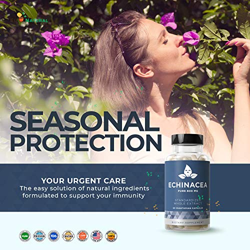 ECHINACEA Pure 800 MG - Función de inmunización saludable, bienestar físico, potencia de....