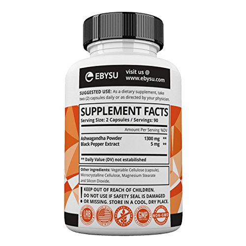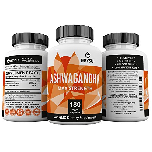 . Descripción del producto Leer más Want to reduce stress and anxiety and naturally boost your immune system? EBYSU Ashwagandha capsules are GMO-free, Vegan, & USA made. Try our Ashwagandha now to now to feel full of vigor! ABOUT ASHWAGANDHA A powerful Ayurvedic herb commonly used to reduce stress & fatigue Known to offer powerful rejuvenating qualities Rich in therapeutic alkaloids, choline, fatty acids & amino acids Known as the “Indian Ginseng” for its potent boost to the immune system HOW MANY CAPSULES IN A BOTTLE? There are 90 Ashwagandha (Withania somnifera) capsules in this bottle. Each capsules contain 650mg of stallion-kicking power, take two for full 1300mg max strength dosage! We've also added 5mg of black pepper to enhance absorption, for faster results! ARE THESE REALLY VEGAN? Yes, 100% suitable for Vegans. There are no animal products in the ingredients or the capsule shell, so if you are Vegan or Vegetarian you can receive 100% no-guilt superfood supplement benefits. . .
