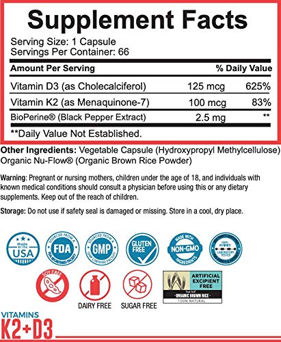 Dr. Boz Vitamin K2 (MK-7) + D3 Capsules with Bioperine® for Best Absorption | Vitamin D Supplement | Vitamin K Supplement | Vitamin K2 D3 Supplement [Bone Health | Heart Health]- 66 Count.