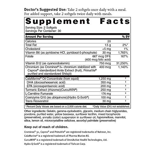. Descripción del producto CARDIOLOGIST’S MAXIMUM ALL-IN-ONE FORMULA FOR ADVANCED HEART HEALTH AND HEALTHY AGING SUPPORT Integrative cardiologist Dr. Stephen Sinatra has learned throughout the years that most people are trying to manage not just one heart health concern (blood pressure, cholesterol, energy levels), but several. That’s why taking ordinary supplements like fish oil or CoQ10 alone almost always falls short! You’ve GOT to be supporting your heart from every possible angle to get real results. That’s why he developed one-of-a-kind Omega Q Plus MAX—his most advanced formula yet, built on his bestselling Omega Q Plus foundation. TACKLES MULTIPLE HEART HEALTH CONCERNS IN ONE FORMULA With Omega Q Plus MAX, you now have one high-quality omega-3 supplement that brings in ALL the heavy hitters when it comes to heart health. It combines highly bioavailable forms of the key nutrients he has found to be most effective in his 40+ years as an integrative cardiologist—heart healthy DHA from CalaMarine omega-3 oil, highly bioavailable CurcuWIN turmeric, trans resveratrol—your body’s preferred form of resveratrol, and Crominex 3+ chromium, PLUS a full 100 mg of absorbable Hydro Q-Sorb CoQ10—critical for anyone over 60 or taking a statin medication. DELIVERS ADVANCED CELLULAR SUPPORT SO YOU CAN AGE WELL Healthy aging starts at the cellular level. That’s why high-quality omega-3 supplement Omega Q Plus MAX includes nutrients and antioxidants that help keep your cells healthy, including in your heart, brain, eyes, and even your skin. It’s the best combination Dr. Sinatra has found for healthy: Cellular energySupport against oxidative stressEye healthBrain and cognitive healthAgingSkin health Plus, he’s included Crominex 3+ chromium, which is clinically shown to support healthy total cholesterol, LDL cholesterol, and triglycerides, healthy endothelial cells, nitric oxide production, and even blood sugar levels. More and more research is showing that Americans have widespread blood sugar concerns, which can ultimately end up having an impact on your heart health. The combination of Crominex 3+ and your body’s preferred form of resveratrol in Omega Q Plus MAX provides outstanding support for healthy insulin sensitivity*, blood sugar levels*, and so much more! *Healthy support for levels already within the normal range Leer más Omega Q Plus MAX brings together highly bioavailable forms of the key nutrients Dr. Sinatra has found to be most effective in his 40+ years as an integrative cardiologist—and the science is truly impressive. 100 MG OF HYDRO Q-SORB COQ10 Inside each cell in your body are tiny energy factories called mitochondria. CoQ10 is the spark that keeps your mitochondria firing so you feel your best every day. Hydro Q-Sorb CoQ10—the powerful antioxidant in Omega Q Plus MAX—is up to 3X better absorbed than powdered CoQ10, and up to7X better absorbed into your cells, to energize cells and replenish depletions caused by statin medications. And when it’s combined with resveratrol and turmeric, you’re getting added antioxidant protection from head to toe, support for healthy circulation, a healthy inflammatory response, and so much more! TRANS RESVERATROL This form of resveratrol is a great antioxidant for all-around healthy aging, but what’s really remarkable are its cardiovascular benefits. At the dose in Omega Q Plus MAX, trans resveratrol supports healthy blood flow, measured by significant improvements in flow-mediated dilation—which measures your arteries' ability to respond to changes in blood pressure. Plus, it supports a healthy inflammatory response and glycemic control. Studies show a significant increase in adiponectin levels, a great indicator of healthy blood sugar and blood lipids. ADVANCED CURCUWIN TURMERIC A highly absorbable form of turmeric for healthy and powerful antioxidant support against oxidative stress. But to get all the amazing benefits of turmeric, you’d typically need to take a hefty amount. That’s because turmeric is notoriously difficult for your body to absorb—so many supplements don’t do much good. The great news is that the UltraSOL technology behind CurcuWIN makes it 46X more absorbable than other forms of turmeric, so you get HUGE benefits without taking mega amounts of pills! NATURALLY RICHER IN DHA OMEGA-3S... WITHOUT THE STINK! Omega-3 fatty acids are some of the best fats you can have in a heart healthy diet. And growing research suggests that a diet rich in omega-3s works hard to support your overall health. Part of what makes Dr. Sinatra’s Omega Q Plus MAX formula so unique is the type of omega-3s he uses. He’s chosen CalaMarine oil, which contains heart healthy DHA and EPA omega-3s in a ratio he prefers, providing the critical omega-3s your cardiovascular system needs. And since it comes from deep-sea squid—not fish—it's clean tasting and does not cause an aftertaste or FISHY BURPS! In fact, 9 out of 10 customers reported no fishy burps with CalaMarine!** Plus, a power trio of folic acid, B6, and B12 for heart and brain health, cellular energy, and more. And L-carnitine, one of Dr. Sinatra’s tried-and-true favorite ingredients to combine with CoQ10. **July 2015 Qualtrics Consumer Survey of CalaMarine product users with 118 responses. Leer más Leer más . .