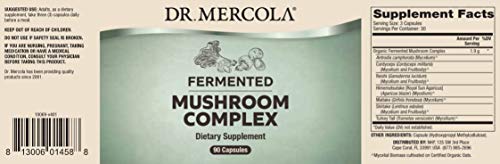 Dr. Mercola Fermentado Complejo de champiñones – 90 Cápsulas – Fabricado con Setas Orgánicas – 100% Certificado Orgánico, mer044, 1.