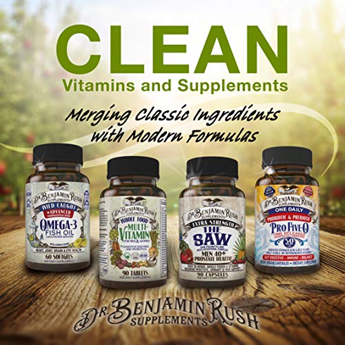 Dr Benjamin Rush Prostate suplementos de salud para hombres 40 Plus con SAW, Saw Palmetto, Beta-Sitosterol, Completo 30 + hierbas, vitaminas y alimentos completos apoyo urinación frecuente, DHT Blocker pérdida de cabello