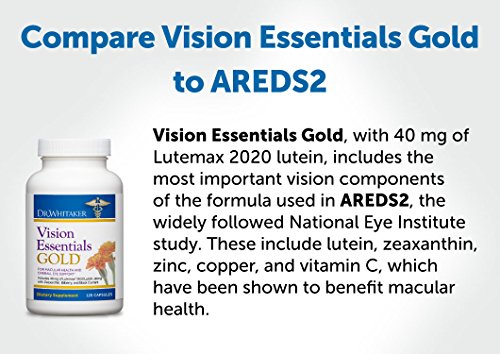 Dr. Whitaker's Vision Essentials Gold ofrece nutrición y apoyo para los ojos premium con Lutein Plus 16 nutrientes de apoyo de visión de 40 mg, 1.
