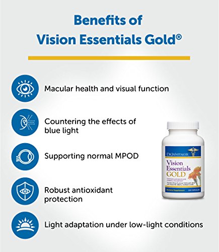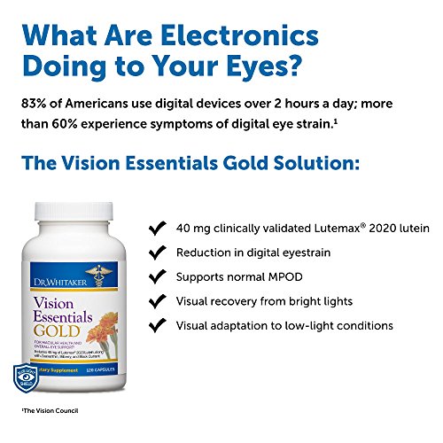 Dr. Whitaker's Vision Essentials Gold ofrece nutrición y apoyo para los ojos premium con Lutein Plus 16 nutrientes de apoyo de visión de 40 mg, 1