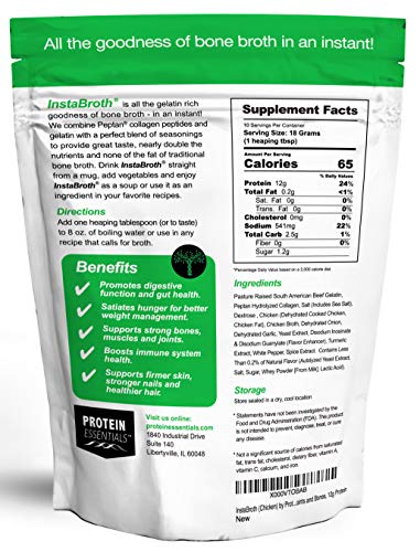 . Descripción del producto InstaBroth, Collagen and Gelatin Rich Bone Broth Powder with 12.5g Protein (6.4oz) (Chicken) . .