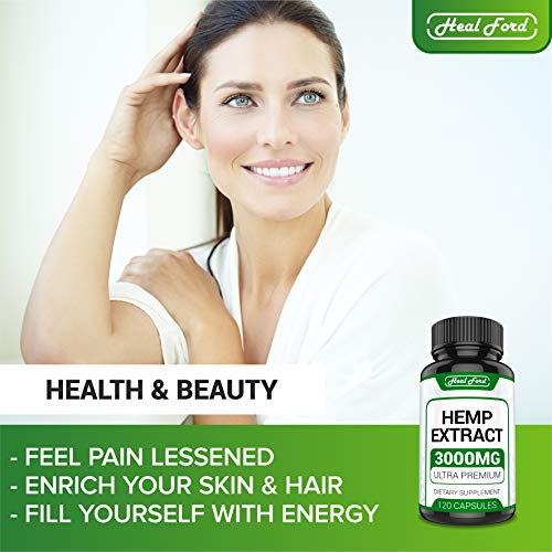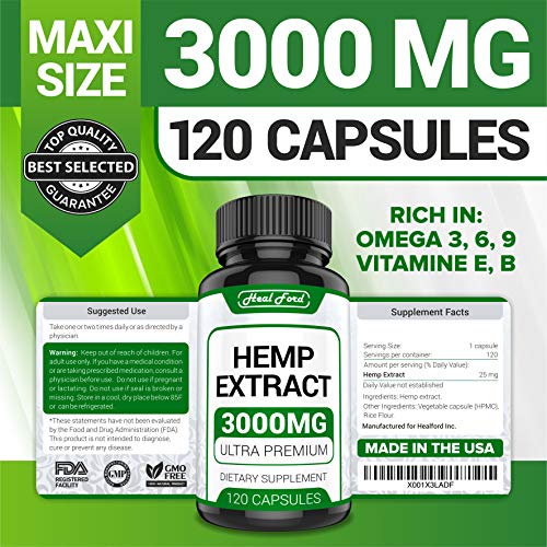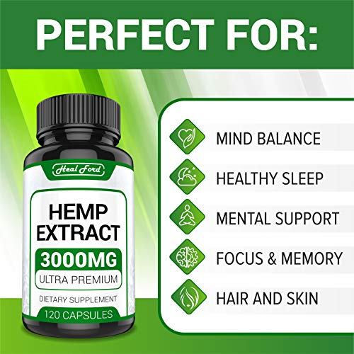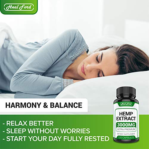 Hemp Oil Capsules - 3000 milligrams Hemp Extract - Natural Sleep Aid - Grown & Made in USA...