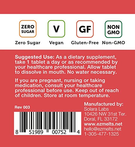 . . Descripción del producto EZ Melts® son una línea completa de Fast Melting dietético Suplementos que son especialmente formulado a derretirse en la boca rápidamente sin la necesidad de agua. Son perfectas para aquellos que no les gusta tragar pastillas o se impide que los hacerlo para médica o estilo de vida razones, o simplemente para aquellos que quieren los beneficios de la calidad, gran sabor Suplementos. Ventajas de EZ Melts®: tabletas Melt rápidamente en la boca con un tacto suave – Sin necesidad de agua o tragar grandes pastillas. Ingredientes activos convertirse fácilmente disponibles para la absorción antes de entrar en el tracto digestivo. Las fórmulas de gran sabor con ingredientes populares en todo el espectro de la salud categorías. We mantener los más altos estándares de cumplimiento normativo para asegurar que nuestros productos se fabrican con, integridad y de seguridad en corriente de acuerdo con las buenas prácticas de fabricación (cgmps). Somos un fda-registered, usda-approved instalación y han sido auditadas por autoridades. .