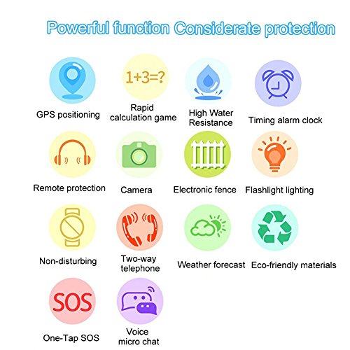 ??2019 New Kids waterproof smart watch: With international waterproof and dustproof level, It is not necessary to remove it washing hands or washing others everyday life. Support Two way call, LBS positioning, SOS emergency call, Camera,, Flashlight, Voice chat, Remote voice monitor, Clock, Math game, etc. Parents can control and set the watch through the APP. ??SOS Emergency Call & Silence mode: Press SOS key for 3 seconds in any model. Parents can be setting three numbers for SOS emergency call, it will call 3 SOS phone numbers alternatively in 2 rounds until answering the call. When in distress, your kid can use this smart watches fast dial to inform you, thanks to an intuitive SOS feature. This is so important in an emergency situation. Parents can set the forbidden time while class time during the week day. ??Do Not Disturb in Classroom: Parents can set the forbidden time while class time. The watch features are not available when the kids are in class time to ensure the normal order of the school. What smarter? Parents will still can remote control or hear the nearby environment to keep your mind in peaceful to resume your child always in safety. (The watch will forbidden all functions except SOS) ??Two Way Communication: Kids can make and received call via parents have set contacts phone number. MOREOVER, When kids in danger. Setting emergency function that press SOS Key for 3 seconds in any mode, it will call 3 phone numbers for SOS calls alternatively in 2 rounds until answering the call. Certainly for emergency situation. IN ADDITION, Parents can via app to send voice Text message to kids. ??Note: The watch Worked as unlocked GSM Phone, supported Micro SIM Card, We provide Smartwatch only but without SIM Card, please buy extra GSM network SIM Card, We’d like to recommend to use SPEEDTALK SIM when you in US (Powered by T Mobile Network). NOT SUPPORTED:AT&T, VERIZON, SPRINT. Other Country please info us your country and sim carriers before your order, not supported in China mainland, Singapore, South Korea, Australia