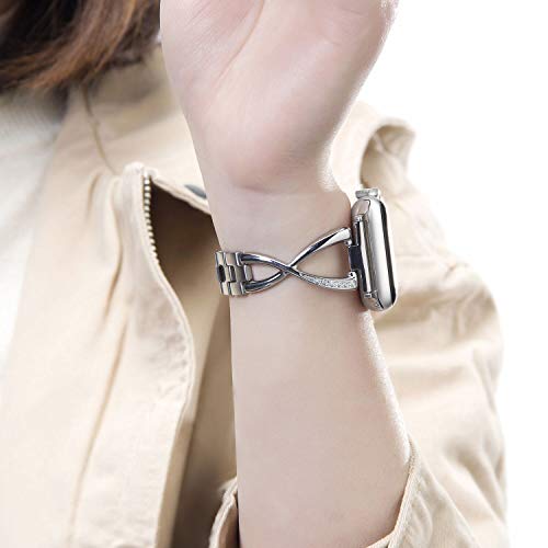 Alta calidad, hecho a mano: acero inoxidable y cristales que no irritan tu muñeca mientras la llevas. Hecho para soportar cualquier clima o nivel de humedad. Las piedras son seleccionadas a mano y colocadas en cada correa a mano. La siguiente evolución en tecnología inteligente de lujo. Tamaño en 1.496 in 1.575 in y 1.654 in 1.732 in correr grande, los eslabones de extracción son muy fáciles para que usted pueda obtener el ajuste perfecto. (Ver vídeo de tallas) Más de 200 estilos para elegir: estas pulseras de metal para Apple Watch vienen con diamantes como piedras en 4 colores diferentes, oro, oro rosa, plata, o negro gris. Combinan perfectamente con los colores del Apple Watch de la serie 3 y 4. Esto es lo que hace que el líder de Pantheon en correas de terceros Apple Watch y el regalo perfecto para su esposa, mamá, novia o usted mismo. ??Nunca se oxidará y es fácil de instalar: si tu correa está sucia o necesita lavarse, se limpia fácilmente con limpiadores antilejía que son seguros para joyas de acero inoxidable. Resistente al agua y al sudor: Hecho de materiales de alta calidad que no se desvanecen o se ven afectados por la exposición al sudor, duchas, piscinas o agua. Aviso: este producto no está fabricado ni aprobado por APPLE (alfabeto, Inc). Pantheon es el principal fabricante de terceros de de correas de Apple Watch de alta calidad, así como de productos con certificación de Apple como nuestro cargador de llavero portátil de Apple Watch. ?? Advertencia de PANTEON: Atención: si tienes cualquier problema con tu correa, por favor contacta con nosotros directamente, y le proporcionaremos un excelente servicio al cliente. Compra con confianza. Si en cualquier momento su correa se desvanece o se rompe en los primeros 18 meses, usted puede ponerse en contacto con nosotros para un reemplazo o reembolso completo.