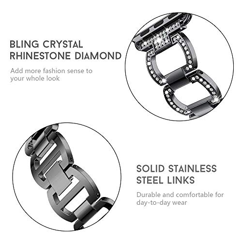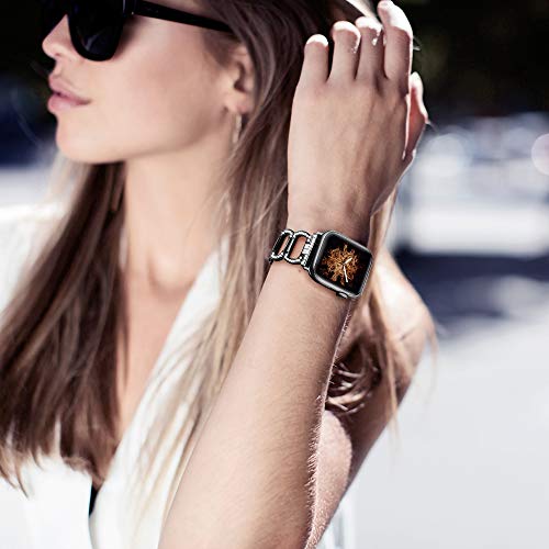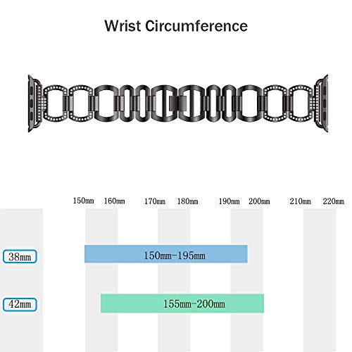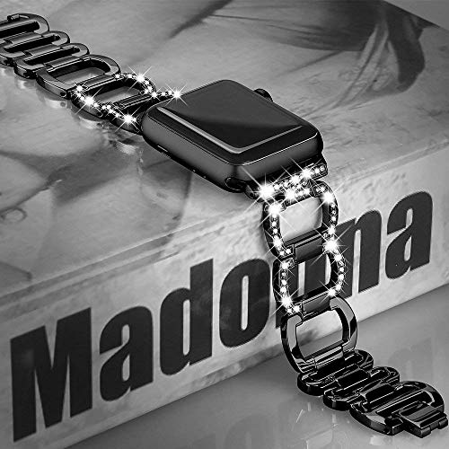 Estilo elegante y lujoso: combinación de diamantes de imitación y acero inoxidable de alta calidad, perfectamente vestido en negocios, deporte y diario. Cómodo de llevar: no alérgico a la piel. Los orificios extra permiten una mejor transpiración de la correa, no tan sudorosa cuando se entrena. Fácil de reescalar: seis cierres plegables en cada correa significan un ajuste perfecto para máxima comodidad. Simplemente retira un cierre plegable para cambiar el tamaño de la correa, no necesita herramientas. circunstancia de muñeca: 1.496 in (1.575 in para la serie 4) se adapta a muñecas de 5.906 in a 7.677 in, 1.654 in (1.732 in para la serie 4) se adapta a muñecas de 6.102 in a 7.874 in. Garantizado: le ofrecemos un reembolso de 12 meses sin razón y garantía de por vida, si tiene cualquier problema con el reemplazo, puede sentirse libre de contactar con nosotros, le ofrecemos 24 horas de servicio