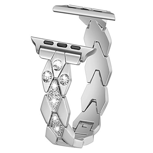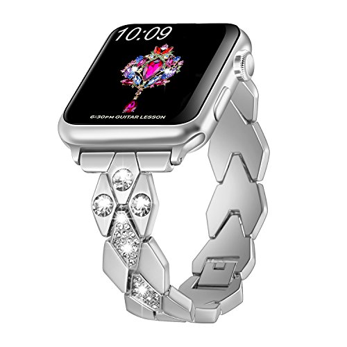 Modelos Compatibles: para Apple reloj Series 1 2 3, Apple Watch Nike +, Apple Edition. Perfecto diseño: Diez piedras de vidrio brillante vestirse su reloj de Apple como un lujo joyas, le da la máxima elegancia. Perfecto para combinar con cualquier ocasión, como la boda, ir de compras y fiesta. Fácil ajuste: última intervensión con una herramienta de eliminación para ajustar la longitud de correa a su muñeca. Mejor regalo: pack it en una caja resistente con el regalo perfecto para usted o sus seres queridos. Pulsera de reloj de Apple de Lujo con diamantes de vidrio es muy popular entre las niñas y las mujeres. Generalmente es la elección perfecta para acción de gracias, Navidad, Día de San Valentín, aniversario y cumpleaños. Lo que se obtiene: 1 x reloj, 1 x Herramienta de extracción, garantía de 12 meses de garantía, dentro de 24 horas quick reply y amigable servicio de atención al cliente de por vida.