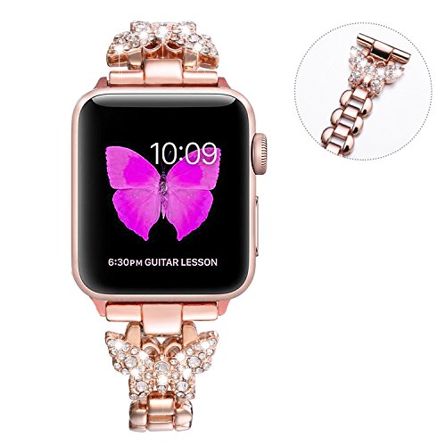 hemos diseñado cuidadosamente una correa de reemplazo de un reloj de Apple, con la atmósfera primaveral, sí, la mariposa de primavera, úsela con dos mariposas bailando en sus manos, haciéndolo más hermoso y ganando más elogios Adecuado para cada ocasión, Este estilo es perfecto para varios actividades, ocasión o evento formal, como bodas, caminatas, carreras, ciclismo, golf, natación y elíptica, compras, fiesta, baile, cita, etc. Mejor opción de regalo para acción de gracias, Navidad, día de San Valentín, aniversario y cumpleaños. Alta calidad: tecnología muy pulida, incrustada con diamantes artificiales, para que su Appie Watch no solo sea una herramienta inteligente, sino también tan lujosa como una joya. Nota: Mantener fay de productos químicos, sudor, baño, colisión. Para evitar cualquier daño. Cierre desplegable para una operación y seguridad sencillas, apertura y cierre fácilmente, longitud ajustada solo en segundos a mano, Se adapta al tamaño de la muñeca A partir de 5.5 " 8.2" (139mm 210mm), enviamos más de una hebilla plegable, no necesitamos herramientas. 1 año de garantía. Realice el pedido con confianza con una garantía de 1 año para el reemplazo o reembolso completo sin devolver el artículo