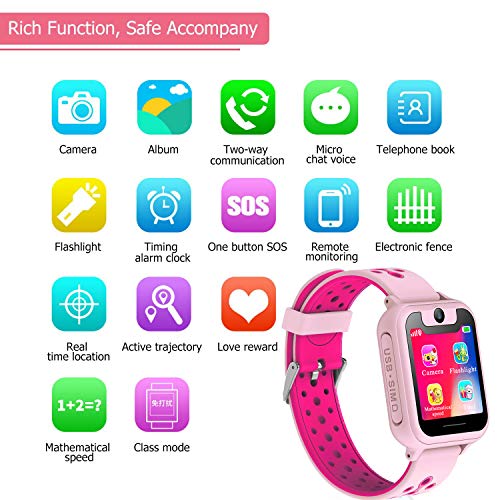 Niños reloj inteligente GPS Tracker, synmila visualización táctil reloj de pulsera teléfono con SIM para niños niñas con monitores de cámara Fitness rastreadores anti lost Wearable Teléfono de reloj pulsera para IOS Android Rosado