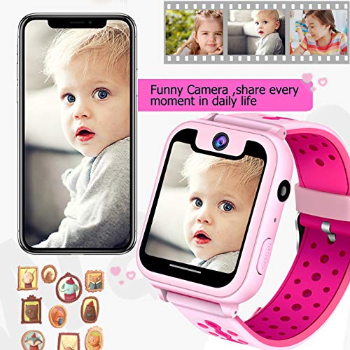 Niños reloj inteligente GPS Tracker, synmila visualización táctil reloj de pulsera teléfono con SIM para niños niñas con monitores de cámara Fitness rastreadores anti lost Wearable Teléfono de reloj pulsera para IOS Android Rosado.