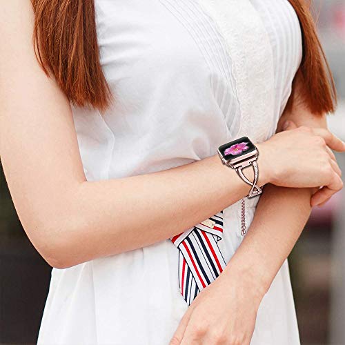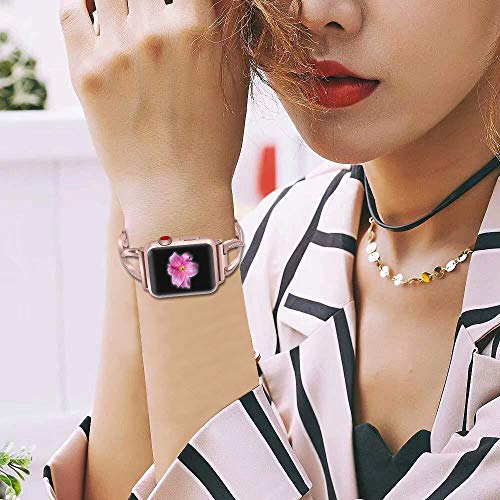 Compatibilidad: Compatible con Apple Watch Series 3 (2017) Series 2 (2016) Series 1 (2015). Todos los modelos. Adecuado para muñecas de 14 a 7.9 in. Estilo: Chic Jewelry Diseño para Apple Watch Band para mujer Acero inoxidable de alta calidad. No aleación de metal. Diseño delgado y elegante. Moda: Set con diamantes de imitación. Basta con soplar para que sea muy de moda. Hace que tu pulsera de reloj parezca una joya. Casual y lo suficientemente apta para cualquier ocasión. Le trae un montón de cumplidos. Fácil de volver: simplemente retira el cierre plegable con la mano para cambiar el tamaño de la correa sin necesidad de herramientas. 1 año de garantía. Pedido con confianza con 1 año de garantía para reemplazo o reembolso completo sin devolución del artículo