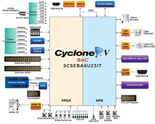 Esto se ajusta a tu . Asegúrate de que esto coincide al ingresar tu número de modelo. 110 K LES; 5570 Kbits de memoria incorporada; 6 PLLs; 2 controladores de memoria dura. Procesador ARM Cortex-A9 de 800MHz de doble núcleo; 1GB DDR3 SDRAM; Bus de datos de 32 bits 1 Gibabit Ethernet PHY; USB Micro-AB Connect; Mirco SD Card Socket . null . Descripción del producto Envía tu certificación académica a terasic para verificar tu estado académico y recibir precios académicos. . null . Envía tu certificación académica a terasic para verificar tu estado académico y recibir precios académicos.