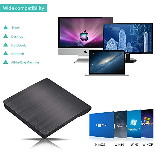• External CD DVD Drive, USB 3.0 Type-C Portable CD DVD + -RW Player Optical Slim Drive Rewriter Burner for USB Type-C Laptop Desktop PC Windows Mac Linux OS Apple (Black) …