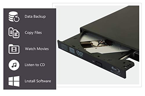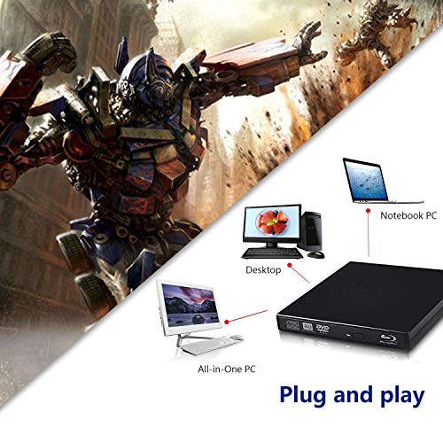 External Blu-ray Drives, External blu-ray DVD Drive for PC Computer USB 2.0blu-ray DVD CD Drive BD - ROM, Support Super-Laptop Desktop Notebook PC (Black)