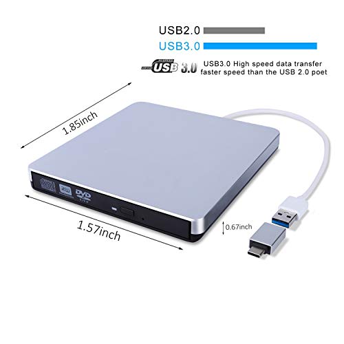 • Guamar USB C Superdrive de aleación de aluminio externo DVD CD Drive USB DVD externo CD + -RW quemador reproductor compatible PC MacBook Laptop Windows 10 8 7 Vista Mac