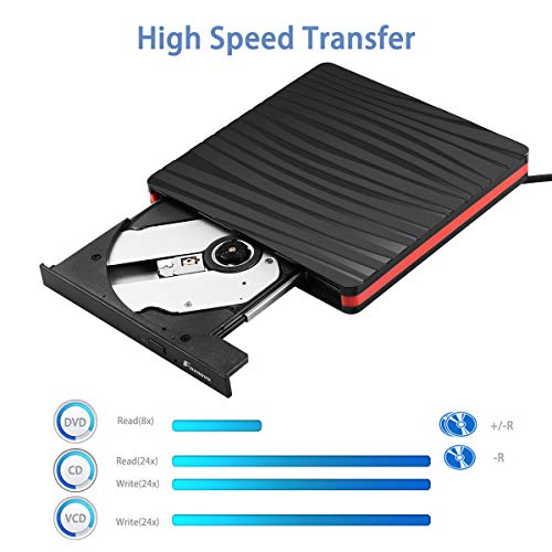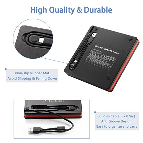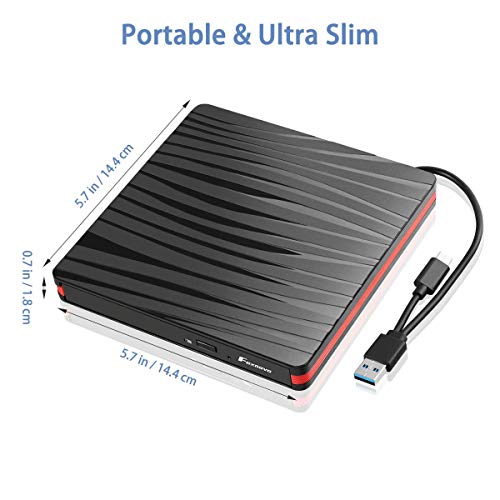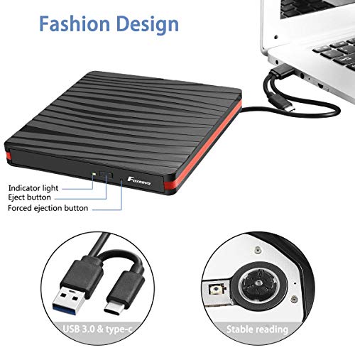 Foxnovo External CD Drive with USB 3.0 & Type-C Interface for DVD-ROM DVD±R DVD-R DL CDA CD-ROM CD-R VCD SVCD CD-RW, High Speed Data Transfer Drive for Windows XP 2003 Vista 7 8.1 10, Linux, Mac OS.