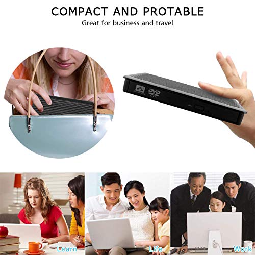 External DVD Drive, andyer Portable High-Speed USB 3.0 Type-C CD DVD + -RW Optical Drive CD Burner Slim DVD Reader Writer for PC Laptop Desktops, Compatible with Windows Mac OSX Linux (Large).