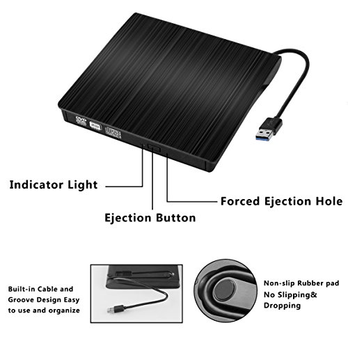 Esto se ajusta a tu . Asegúrate de que esto coincide al ingresar tu número de modelo. ? ? Plug & Play no hay necesidad de instalar ningún driver para este USB unidad de CD. Simplemente conecte la unidad de CD en su computadora portátil u otro dispositivo, pulse botón pop-up y poner en la bandeja de disco, va a ser reconocido automáticamente y reproducir, es conveniente de usar. Compatibilidad universal: La unidad de DVD es compatible con Windows 10 8 7 98 SE ME 2000 XP Vista, Linux, todas las versiones de MAC OS 10 o más abajo. Soporte portátil, Notebook, PC, computadora de computadora. Para ordenadores de sobremesa, por favor conecte el dispositivo al puerto USB en parte posterior de la placa base para el uso normal. ? ? USB 3.0 de alta velocidad el USB 3.0 velocidad de transferencia de datos es 10 veces de USB 2.0, que es hasta un máximo de 5 Gbps. El reproductor de DVD externo también compatible con USB 2.0 y USB 1.0. Tecnología Buffer Under Run protección (max 8 x DVDR velocidad de escritura, Max 24 x CD velocidad de escritura). Soporta disco: dvd-rdl, CD-R, CD-RW, DVD-R, DVD-RW, DVD + R, DVD + R, DVD + RW, DVD-RAM, etc. Diseño compacto: Este grabador de DVD es ultra delgado y ligero. It 's fácil de llevar con la bolsa de almacenamiento de protección. La bolsa a prueba de polvo a prueba de choques bulbble puede ayudar a mantener el USB 3.0 disco CD DVD desde cero. El cable de datos en la parte trasera de la CD externo writter adopta un diseño integrado, fácil de organizar sin desorden. ? buen material: Esta unidad de disco externa utiliza tecnología de malla de cobre puro. Está hecho de material de alambre de dibujo, cable con baja impedancia y capacidad anti-interferencia, bajo nivel de ruido, anti-interferencia y alta durabilidad. Por lo tanto, puede funcionar bien en la quema, la escritura y lectura con transmisión de datos más estable. . Descripción del producto Notes (1)If you connect it to a USB hub or extension cords, it may cannot recognize the driver or read the CD DVD. (2)This drive is not fully compatible with computers of windows 10 system due to the compatibility issues between windows 10 itself and the external hardware. We suggested that you download the 3.0 drive for windows 10, then it will work. (3)This external dvd drive couldn’t work with projector directly. (4)Do not have the machine on a strong magnetic object nearby. (5)Date transfer speed is also affected by computer and system environment. Our usb 3.0 external CD DVD dive is the best choice for your slim laptop or desktop which has no internal DVD drive.The High-speed USB 3.0 interface drives with low power consumption. No hassle with install software, just plug and play. Made with premium wire drawing material of shockproof, low noise, anti-interference and high durability.This DVD RW burner works well in burning, writing and reading,which can bring you better experience for watching movies, listening to musics, installing software or system, burning discs. With built-in cable and groove design,the optical drive is easy to use and organize,there are four non-slip rubber pad to protect the drive won’t easily fall off form your desk. We provide a thick protective case with the cd reader. When you do not need to use, you can put away with the case for dust-proof. It designed with shockproof bubble to reduce damages caused by accidentally bumping, scratch. It also fits many other portable external DVD Hard drives on the market. Leer más Specifications Loading Type: Tray Material: ABS brushed plastic materials Dimension:5.31*5.31*0.74inch Interface: USB3.0 (2.0 Compatible) Buffery Memory: 2MB Power Consumption: 3~5W Weight: 400g Write Speed(MAX) CD-R:Max.24X CD-RW:16X DVD-R:Max.8X DVD-RDL:Max.4X DVD-RW:Max.6X DVD + R:Max.8X DVD +R DL:Max.4X DVD +RW:Max.8X DVD-RAM:3X-5XPCAV(8GB) Read Speed(MAX) DVD-ROM: Max 8X CD-ROM: Max 24X What's included 1X USB3.0 External Optical Drive 1X Storage Case 1X User Manual Leer más . null . Información de producto Color:External CD DVD Drive with Case Dimensiones del paquete 7.8 x 7.3 x 1.9 pulgadas Peso del producto 13.6 onzas Peso del envío 13.6 onzas (Ver tarifas y políticas de envío) Fabricante CE810*1+CE808*1 ASIN B078XRNJPD Número de modelo del producto ce808+ce810 Opinión media de los clientes 4.1 de 5 estrellas 100 calificaciones 4.1 de 5 estrellas Clasificación en los más vendidos de nº293 en Unidades Externas de CD Fecha de disponibilidad en enero 10, 2018 Garantía y asistencia Garantía del producto: Para obtener información sobre la garantía de este producto, Product Warranty: For warranty information about this product, please haz clic aquí Comentarios Si vendes este producto, ¿te gustaría sugerir actualizaciones mediante el soporte al vendedor? ¿Quieres informarnos sobre un precio más bajo? . null