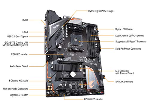 Esto se ajusta a tu . Asegúrate de que esto coincide al ingresar tu número de modelo. Supports AMD 2nd generation Ryzen Ryzen with Radeon Vega Graphics 1st generation Ryzen processors Dual Channel Non-ECC Unbuffered DDR4, 4 DIMMs Hdmi, DVI-D ports for multiple display Integrated I O shield of Ultra durable Design Support for AMD Quad-GPU CrossFire and 2-Way AMD CrossFire technologies . Más información del producto Leer más AORUS, a premium gaming brand powered by GIGABYTE, delivers a full spectrum of gaming products ranging from gaming laptops, motherboards, graphics cards, mechanical gaming keyboards, to many other gaming hardware and gears, offering the most extreme gaming experiences for enthusiasts worldwide! B450 AORUS Elite Supports AMD 1st & 2nd Generation Ryzen Ryzen with Radeon Vega Graphics Processors GIGABYTE Exclusive 8118 Gaming LAN Dual PCIe Gen3 M.2 NVMe with Thermal Guard RGB FUSION with Digital LED & RGB LED Headers Smart Fan 5 with FAN STOP Integrated I O Shield Leer más Motherboard Features AORUS Style GIGABYTE's 400 series motherboards perfectly fit the latest AMD Ryzen 2000 series processors' computing performance with more features and more control. Maximize your PC's potential with AMD StoreMI technology, which accelerates traditional storage devices to reduce boot times and enhance the overall user experience. M.2 Thermal Guard With durability in mind, GIGABYTE provides a thermal solution for M.2 drives. The M.2 Thermal Guard prevents throttling and bottlenecks from M.2 devices as it helps to reduce and dissipate heat before it becomes an issue. Integrated I O Shield AORUS brings premium features onto the mainstream B450 platform by providing users with high end features such as the integrated I O shield which makes PC building more convenient than ever. Leer más GIGABYTE AORUS Features RGB Fusion Now offering more LED customizations than ever, users can truly adapt their PC to represent their lifestyle. With full RGB support and a redesigned RGB Fusion application, the user has complete control over the LEDs which surround the motherboard. Smart Fan 5 With Smart Fan 5 users can ensure that their gaming PC can maintain its performance while staying cool. Smart Fan 5 allows users to interchange their fan headers to reflect different thermal sensors at different locations on the motherboard. VR Ready With technologies such as NVMe support via M.2 or U.2 and a one piece metal shielding to brace for heavier discrete graphics cards, AORUS motherboards have the tools you need to start your journey in VR. Ultra Durable GIGABYTE motherboards are built with Ultra Durable components such as anti-sulfur transistors, solid plated power connectors, and humidity protection glass fabric that give users peace of mind on the longevity of their system. Leer más B450 AORUS PRO WIFI B450 AORUS Elite B450 AORUS M B450M DS3H B450 I AORUS PRO WIFI CPU Support AMD 2nd Generation Ryzen Ryzen with Radeon Vega Graphics 1st Generation Ryzen Processors AMD 2nd Generation Ryzen Ryzen with Radeon Vega Graphics 1st Generation Ryzen Processors AMD 2nd Generation Ryzen Ryzen with Radeon Vega Graphics 1st Generation Ryzen Processors AMD 2nd Generation Ryzen Ryzen with Radeon Vega Graphics 1st Generation Ryzen Processors AMD 2nd Generation Ryzen Ryzen with Radeon Vega Graphics 1st Generation Ryzen Processors Memory Type Dual-Channel DDR4 Dual-Channel DDR4 Dual-Channel DDR4 Dual-Channel DDR4 Dual-Channel DDR4 Memory DIMMs 4*DDR4 4*DDR4 4*DDR4 4*DDR4 2*DDR4 Graphics Interface 1*PCIe 3.0 x16 1*PCIe 3.0 x16 1*PCIe 3.0 x16 1*PCIe 3.0 x16 1*PCIe 3.0 x16 Expansion Slots 1*PCIe 2.0 x4 2*PCIe 2.0 x1 1*PCIe 2.0 x4 2*PCIe 2.0 x1 1*PCIe 2.0 x4 + 1*PCIe 2.0 x1 1*PCIe 2.0 x4 + 1*PCIe 2.0 x1 N A M.2 slot 2 (M.2 Heatsink *2) 2 (M.2 Heatsink *1) 1 (M.2 Heatsink *1) 1 (M.2) 1 (M.2 Heatsink *1) Display Interface HDMI, DVI-D HDMI, DVI-D HDMI, DVI-D HDMI, DVI-D DisplayPort, HDMI*2 WIFI Intel Dual Band 802.11ac WIFI N A N A N A Intel Dual Band 802.11ac Wave2 WIFI Audio ALC1220-VB 8-Channel HD 8-Channel HD 8-Channel HD Realtek ALC1220-VB Form Factor (mm) ATX (305x244) ATX (305x225) mATX (244x244) mATX (244x215) Mini-ITX (170x170) . Descripción del producto Supports AMD 2nd generation Ryzen Ryzen with Radeon Vega graphics 1ST generation Ryzen processors Dual Channel Non-ECC Unbuffered DDR4, 4 DIMMs HDMI, DVI-D ports for multiple display integrated I O shield of Ultra durable Design Dual Ultra-Fast NVMe PCIe Gen3 M.2 (x4, x2) with one thermal Guard high quality Audio Capacitors and Audio Noise Guard with LED Trace Path Lighting RGB FUSION with Multi-Zone LED light Show design, Supports Digital LED & RGB LED strips GIGABYTE exclusive 8118 Gaming LAN with bandwidth management Smart Fan 5 features 6 Temperature Sensors and 4 Hybrid Fan Headers with FAN STOP app Center Including Easy Tune and Cloud Station Utilities CEC 2019 Ready, Save power with a single click. Atx Form Factor; 30.5cm x 23.5cm . Información de producto Especificaciones técnicas Contraer todo Resumen : Tamaño de pantalla, Resolución de pantalla, coprocesador gráfico, Tarjeta gráfica RAM RAM DDR4 Otros Detalles Técnicos Marca AMD Series Elite Número de modelo del producto B450 AORUS ELITE Peso del producto 3 pounds Dimensiones del producto 3.4 x 10.7 x 13.2 pulgadas Dimensiones del artículo Largo x Ancho x Altura 3.4 x 10.7 x 13.2 pulgadas Especificación técnica User Manual [pdf ] Información adicional ASIN B07GRNSWNR Opinión media de los clientes 4.2 de 5 estrellas 77 calificaciones 4.2 de 5 estrellas Clasificación en los más vendidos de nº100 en Tarjetas Madres para Computadoras Peso del envío 3.05 pounds (Ver tarifas y políticas de envío) Producto en desde agosto 23, 2018 Garantía y asistencia Política de devolución de :Puedes devolver cualquier computadora nueva que hayas comprado en que recibas descompuesta o dañada, o que esté en una caja sin abrir, por un reembolso íntegro en un plazo de 30 días después de la compra. s