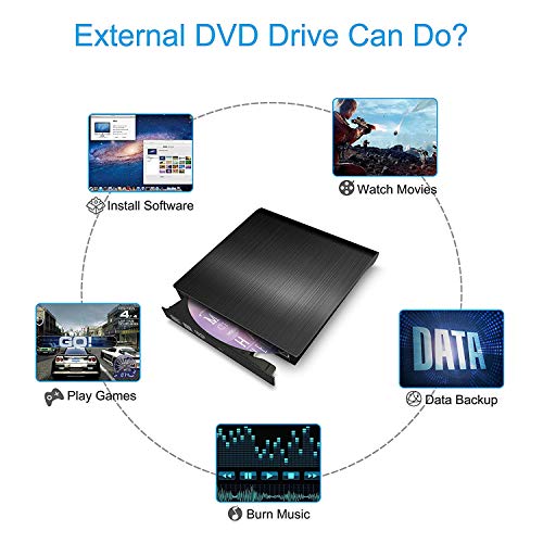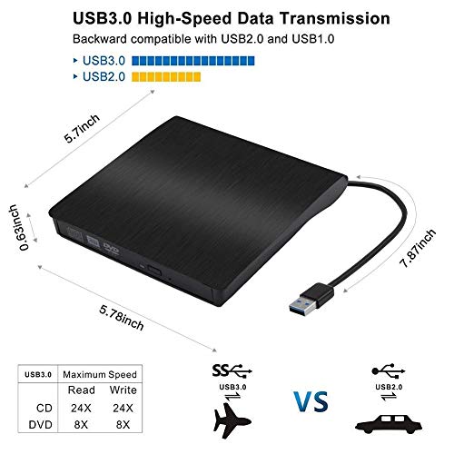Externa USB 3.0 Unidad de CD, CD DVD-RW, CD-RW grabadora SuperDrive para transferencia de datos de alta velocidad para computadora portátil Notebook PC de sobremesa compatible con Windows Vista 7 8.1 10, Mac OSX por joyphy, Negro