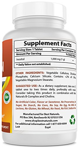 • Best Naturals Inositol 1000 mg 120 tabletas – llamados también Vitamina B8
