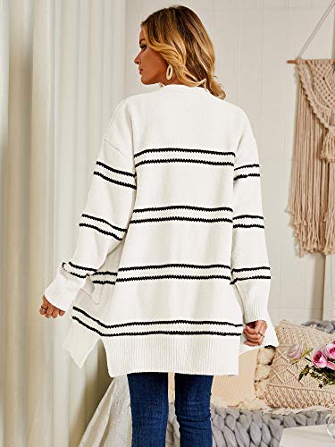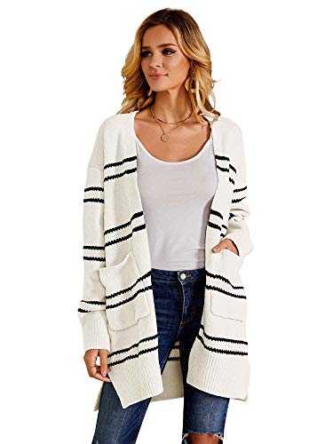 Ferbia - Sudadera de forro polar para mujer, diseño de rayas, estilo casual, color cardigan.