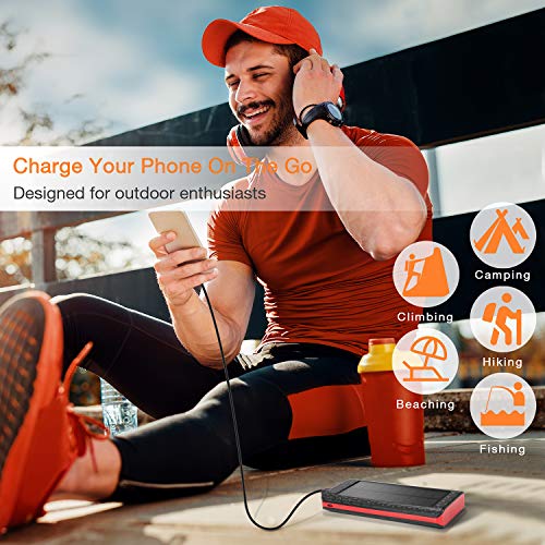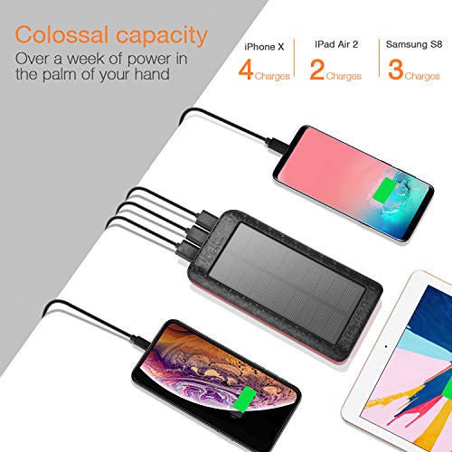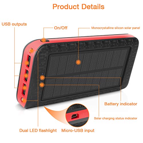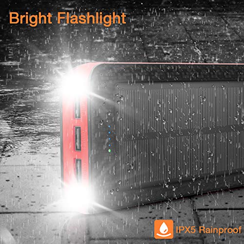 • Solar Charger 24000mAh, Portable Phone Charger External Battery Pack Backup Charger, High-Speed 5V 2.1A Tri-USB Output Ports, Flashlight, IPX5 Rainproof for Camping, Travel, Emergency
