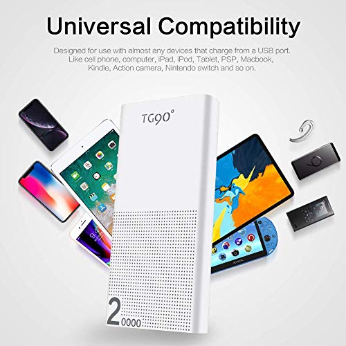 ? Cargador rápido de carga rápida 3.0 de 20000 mAh: con 2 puertos de salida USB: 5V 3A, 9V 2A, 12V 1.5A, máx. 18W. Este cargador de batería puede cargar dos dispositivos o un Galaxy S8 o S8 Plus y un MacBook de 12 pulgadas a la vez a su velocidad de carga óptima. Este banco de energía es compatible con la mayoría de los teléfonos de carga rápida, teléfonos de carga no rápida, tabletas y otros dispositivos. • Salida de carga rápida: cargue los teléfonos inteligentes compatibles de 0 a 80 en solo 35 minutos, que es un 75 más rápido que un cargador convencional. Recarga rápida con una entrada máxima de 18W: la entrada QC3.0 permite una rápida recarga del cargador de batería, lo que demora entre 6 y 7 horas usando el cargador QC3.0 de 18W. Y tomará alrededor de 12 13 horas en un cargador de 5V 2A. Nota: Se recomienda recargar a través de un adaptador de cargador DC 5V 2A o 5V 2.4A AC o 5V 3A o 9V 2A o 12V 1.5A. Salida de alta capacidad: 20000mAh es suficiente poder de carga para llenar el iPhone 7 7.8 veces, el iPhone 8 8.4 veces, el Galaxy S8 4.8 veces, el Nintendo Switch 2.5 veces, el Huawei P10 4.5 veces, el iPhone X 4.4 veces y el iPad mini 2.3 veces. Paquete: 20000mAh Cargador de batería x 1, Cable micro USB x 1, 1 x Guía del usuario y 18 meses de garantía gratis.