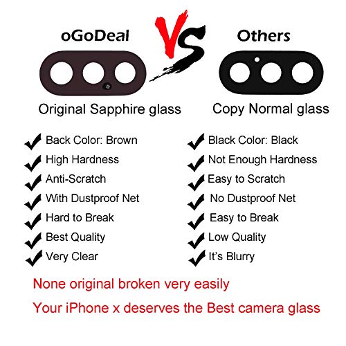 OGoDeal OEM trasera de cámara de cristal cubierta de lente de repuesto para iPhone Xs y iPhone Xs Max original con adhesivo preinstalado y herramientas de reparación.